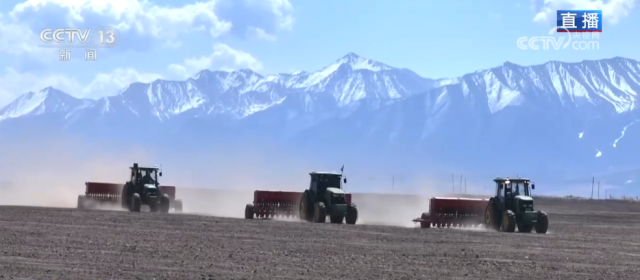 在青海省门源县的一处青稞栽培基地,祁连山东段的达坂山雪峰清晰可见,这儿的海拔在3000米以上,属高原冷凉气候;一起日照十分足够,是青藏高原青稞栽培的黄金海拔带,也是青海省青稞栽培的中心区之一。此时,当地农户正抢抓高原春播的黄金窗口期,展开耕种作业。
